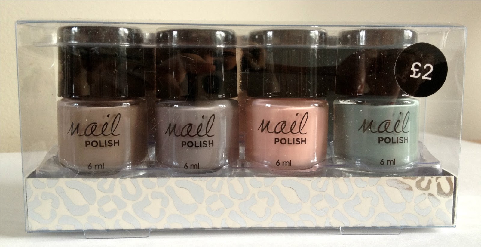 The final thing I bought from Primark was this set of four nail polishes. I have never bought any of the Primark nail polishes before because I have always been a bit sceptical of the quality due to the fact that they're only £2 for four nail polishes, but the colours of these along with the really cute packaging really drew me in and so I decided to give them a try!